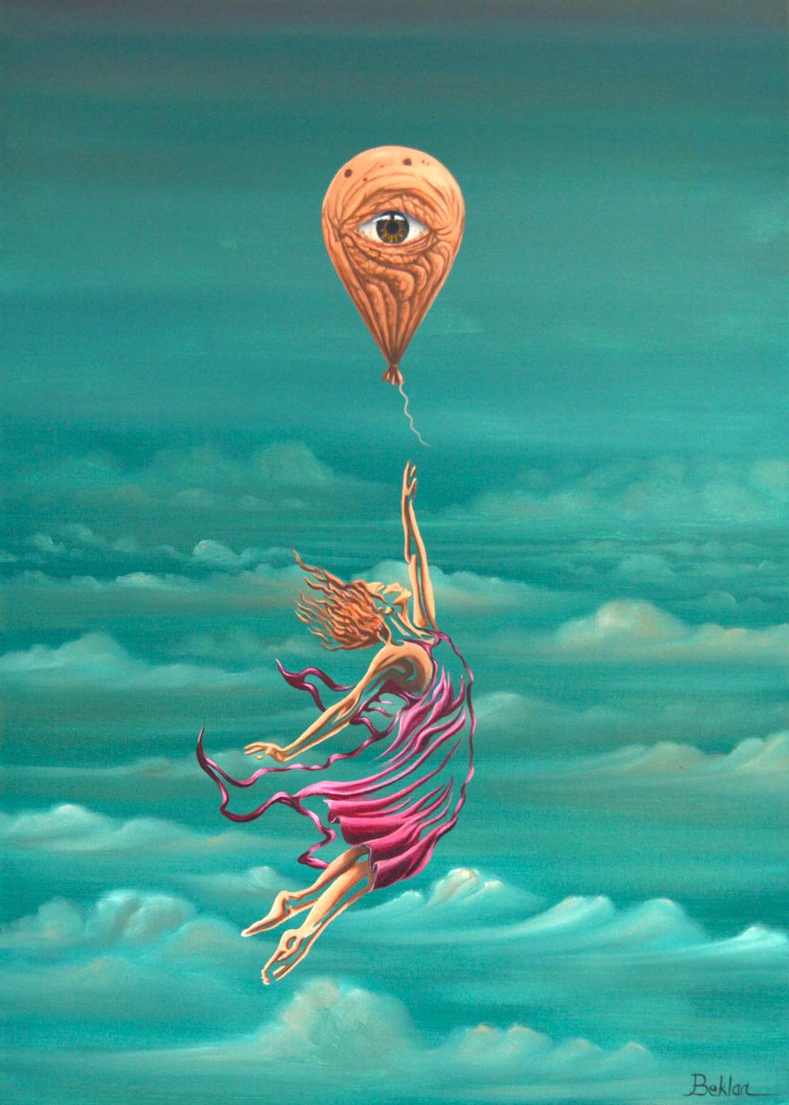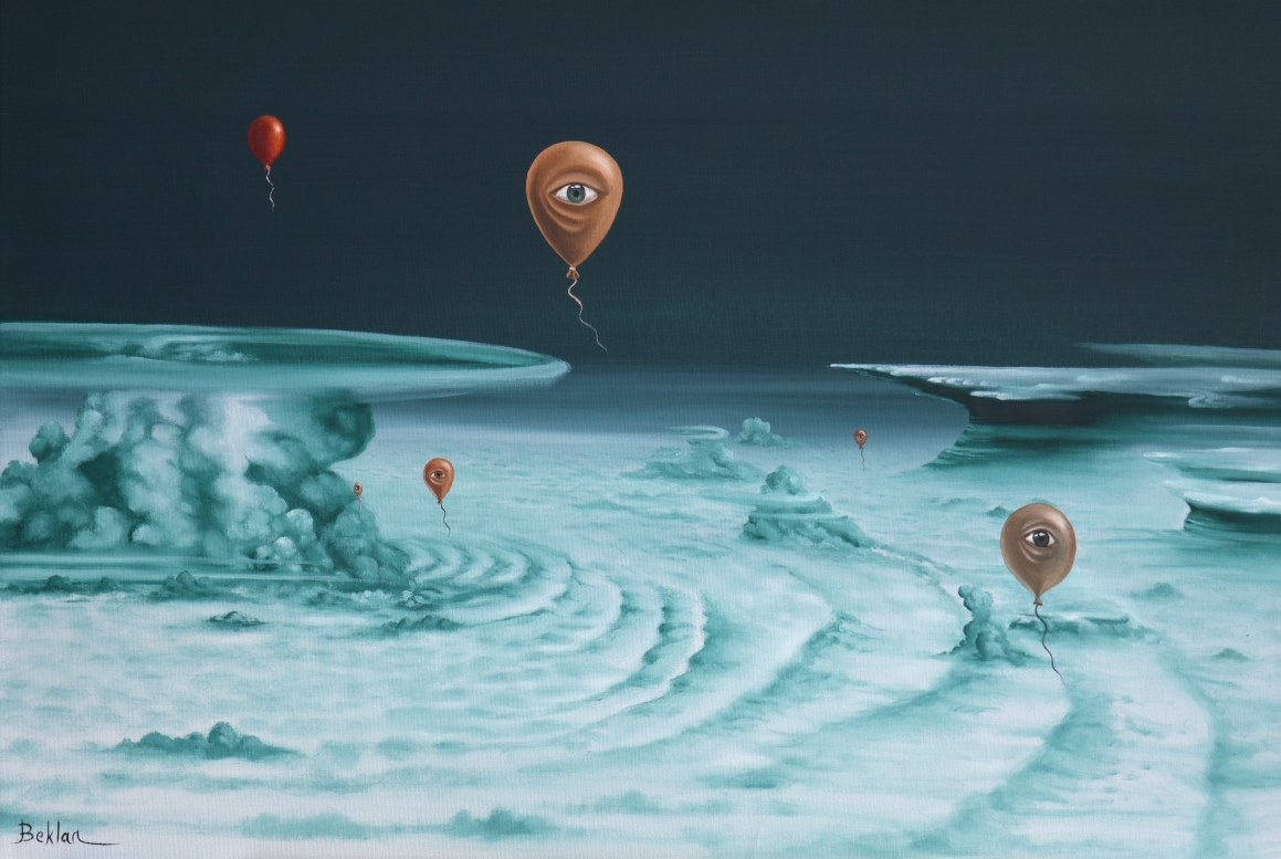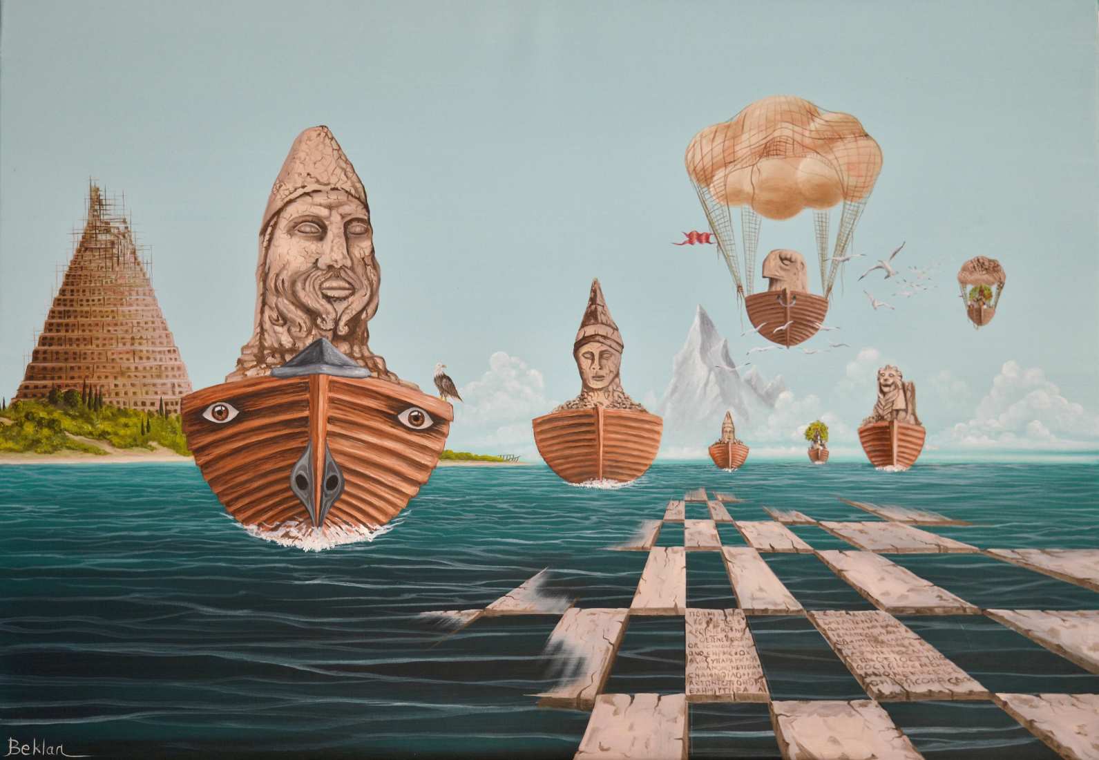 Beklan Kizilcay in a surrealist painter who has adopted a figurative style and in the paintings you feel that the figures express an oppositional stance from their actions.