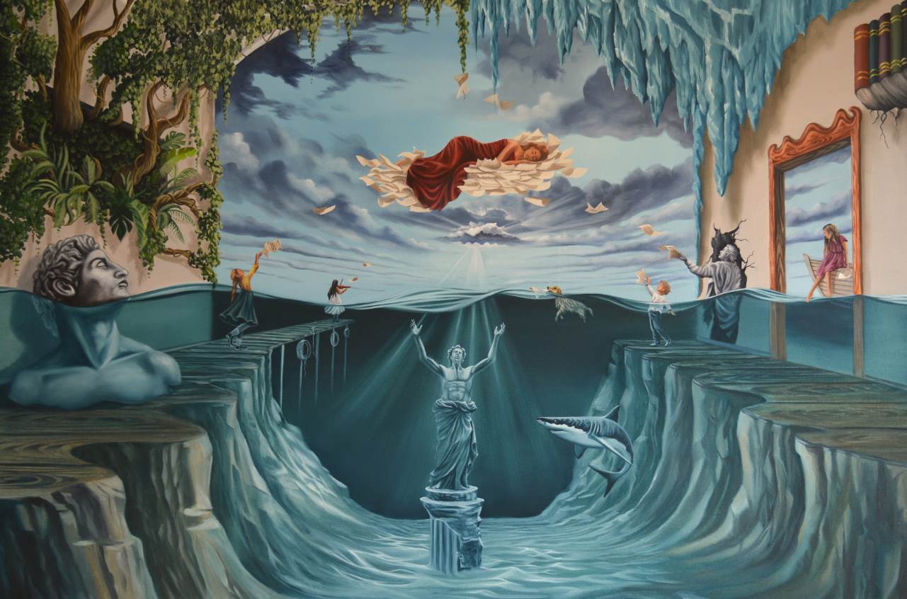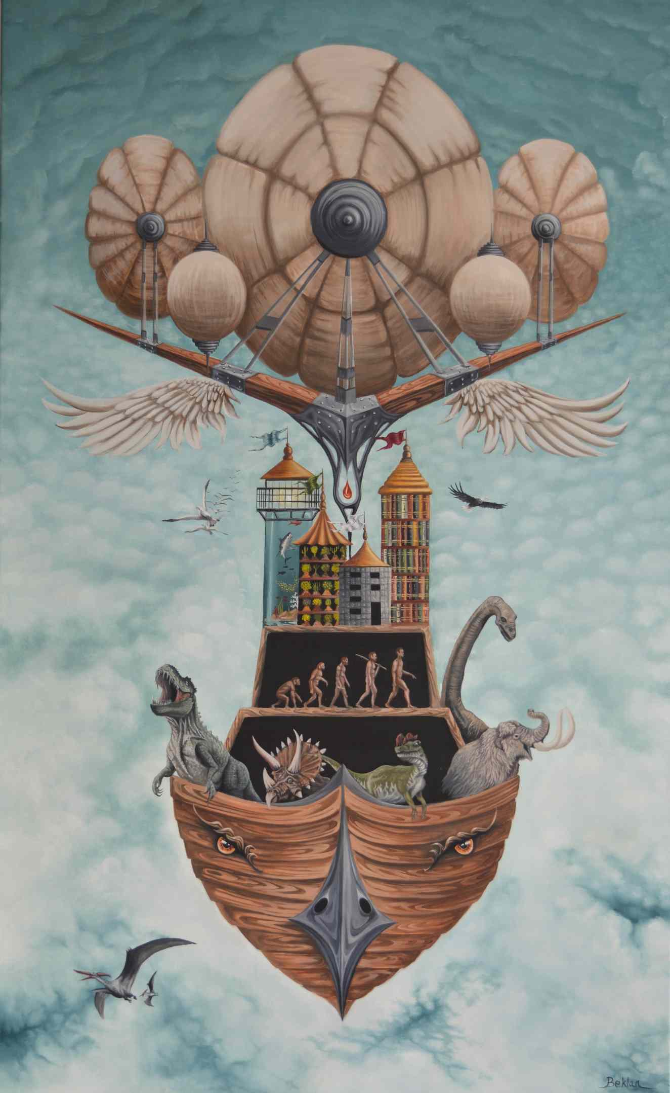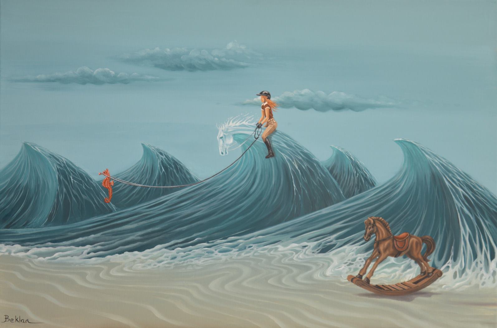 Beklan Kizilcay in a surrealist painter who has adopted a figurative style and in the paintings you feel that the figures express an oppositional stance from their actions.